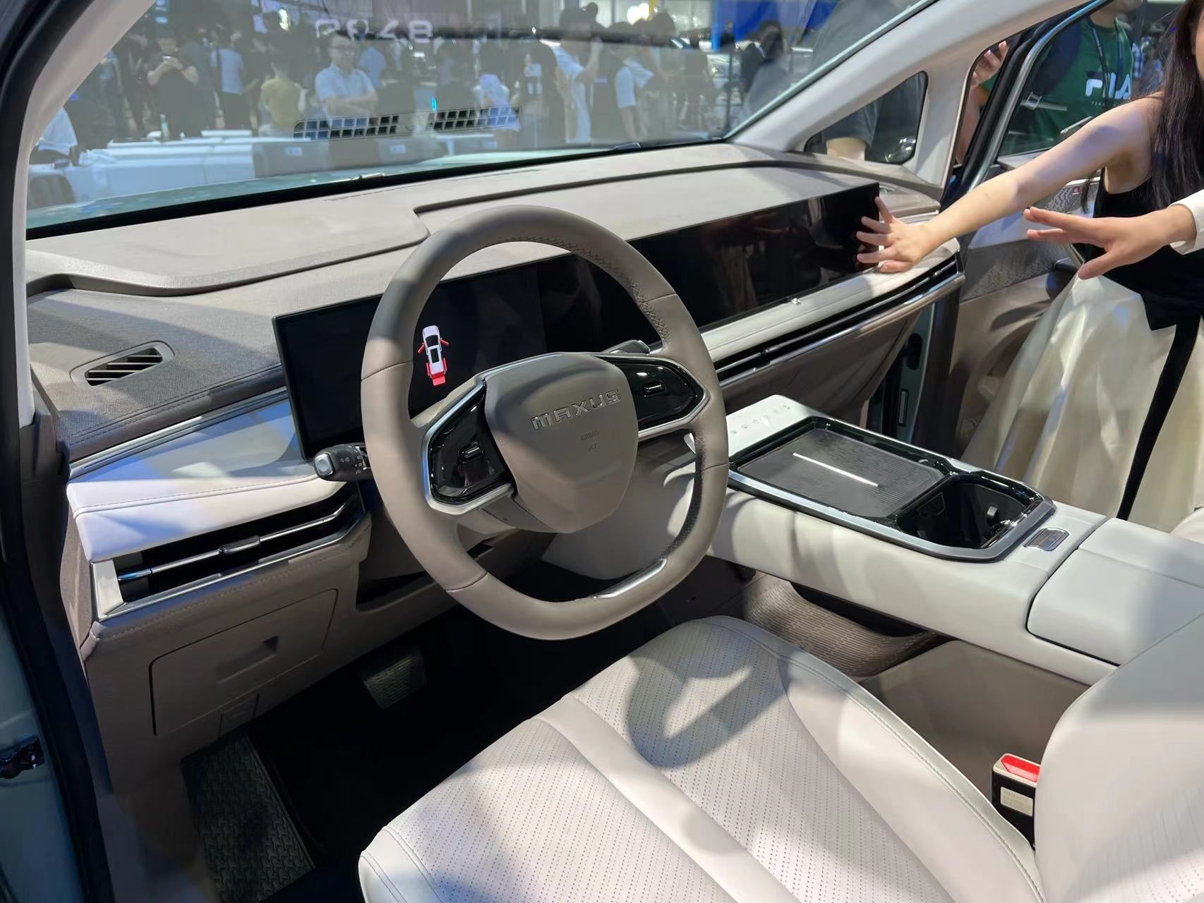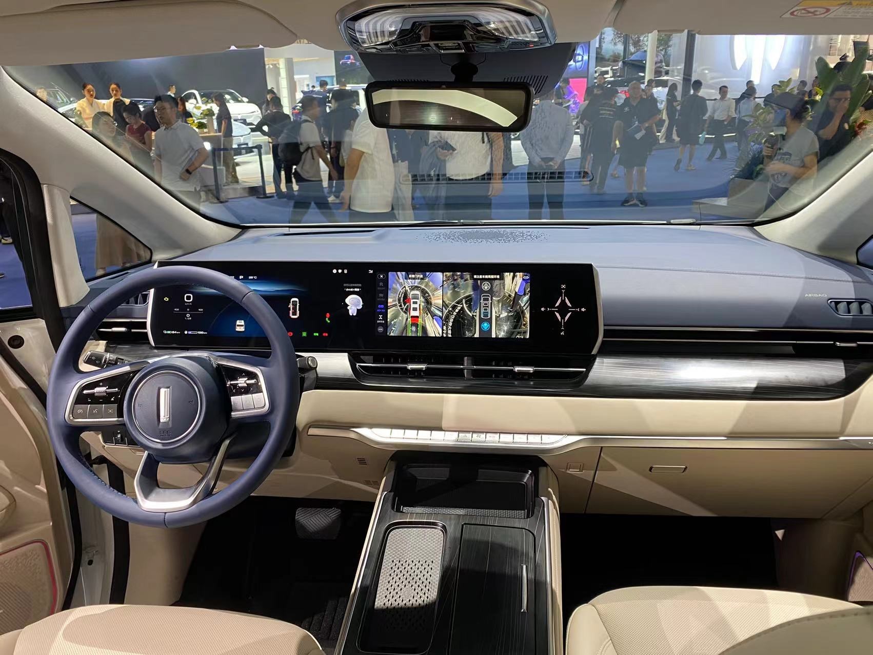 進(jìn)入車內(nèi),最引人矚目的便是由三塊12.3英寸屏組成的聯(lián)屏系統(tǒng),并內(nèi)置高通驍龍8155芯片斑馬智行系統(tǒng)。主副駕車門上還配備了電子后視鏡(選裝件)的車內(nèi)顯示屏,座艙的科技感濃重。整個內(nèi)飾風(fēng)格素雅簡約,中控臺和中央通道區(qū)域使用了大面積皮質(zhì)包覆,質(zhì)感豪華。