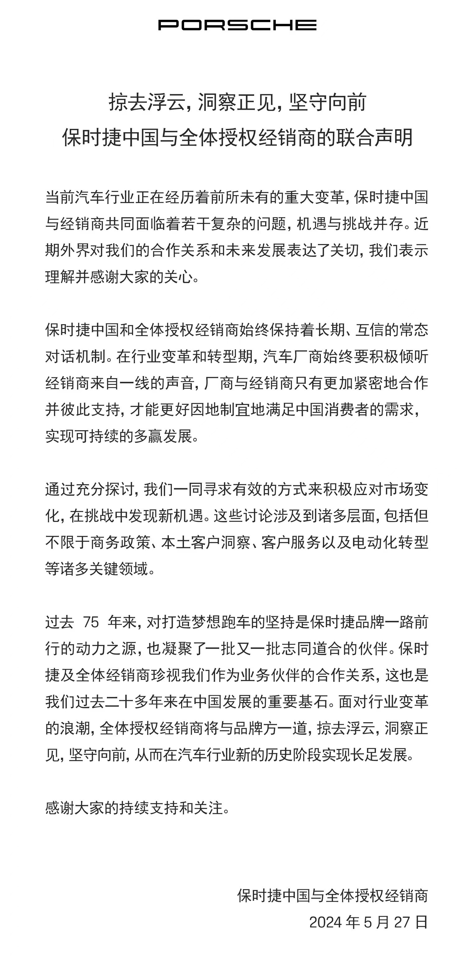 誠然,隨著價格戰(zhàn)的愈演愈烈,自主品牌的沖高,消費(fèi)者購車觀念的變化,保時捷日后又將如何應(yīng)對呢?反正壓榨經(jīng)銷商伙伴肯定是最不明智的,畢竟,那可是隊(duì)友啊。