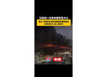 比亞迪一立體車庫突發(fā)大火,官方:該車庫為試驗(yàn)及報(bào)廢車輛停放區(qū),火勢(shì)已撲滅,無人員傷亡
