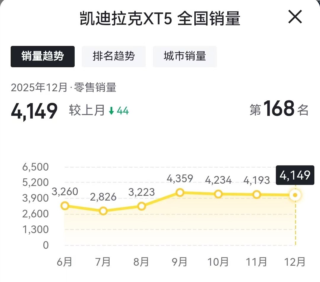 很多人可能都沒有注意到,上汽通用凱迪拉克品牌旗下的XT5這款車型,已經(jīng)連續(xù)四個月時(shí)間銷量維持在四千多臺左右了。雖說這個成績已經(jīng)比它在去年6、7、8月份的銷量數(shù)據(jù)要好很多,但放在整個豪華品牌中型SUV市場里,這樣的銷量表現(xiàn)可始終不是長遠(yuǎn)之計(jì)。